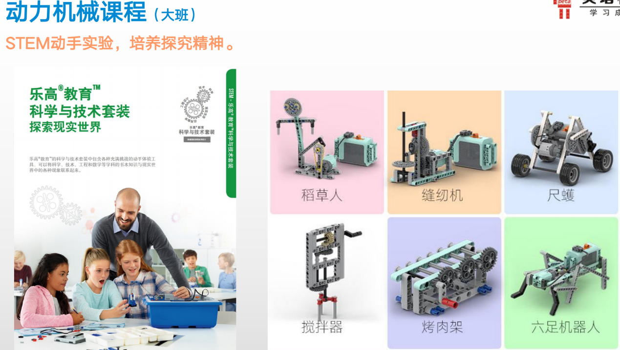 课程介绍:以乐高科学与技术套装为教具,结合 STEM 理念设计动力机械主题任务(如搭建稻草人、缝纫机、六足机器人等),深入探索机械原理与现实应用:
