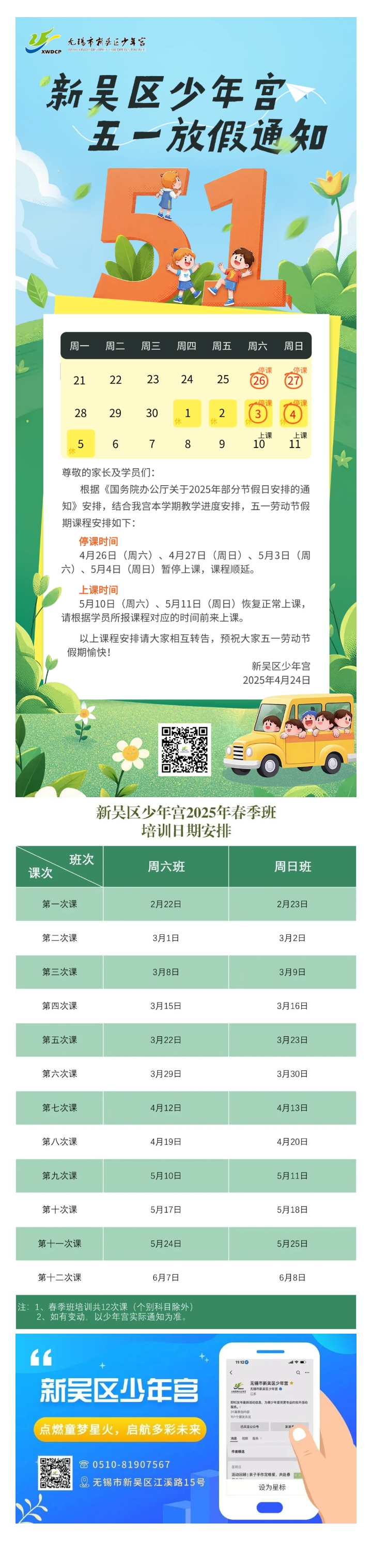 通知公告 | 新吴区少年宫五一劳动节放假通知