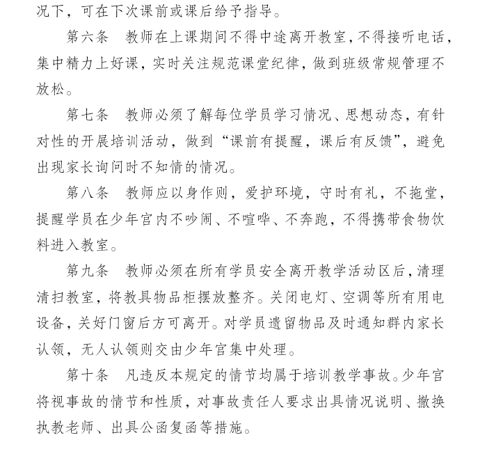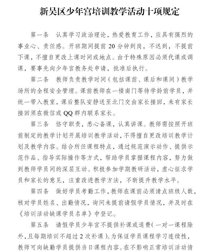 新吴区少年宫培训教学活动十项规定