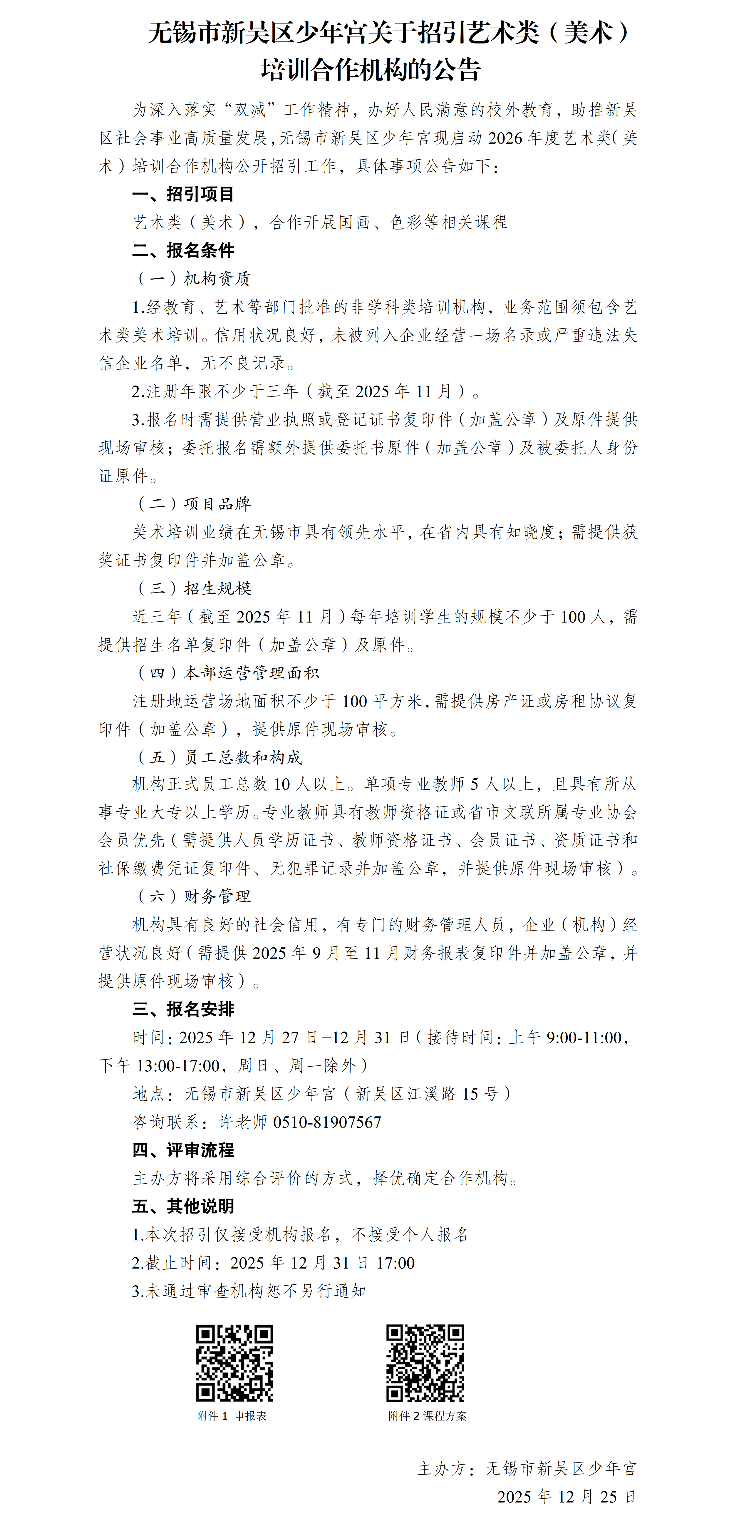 新吴区少年宫关于招引艺术类(美术)培训合作机构的公告